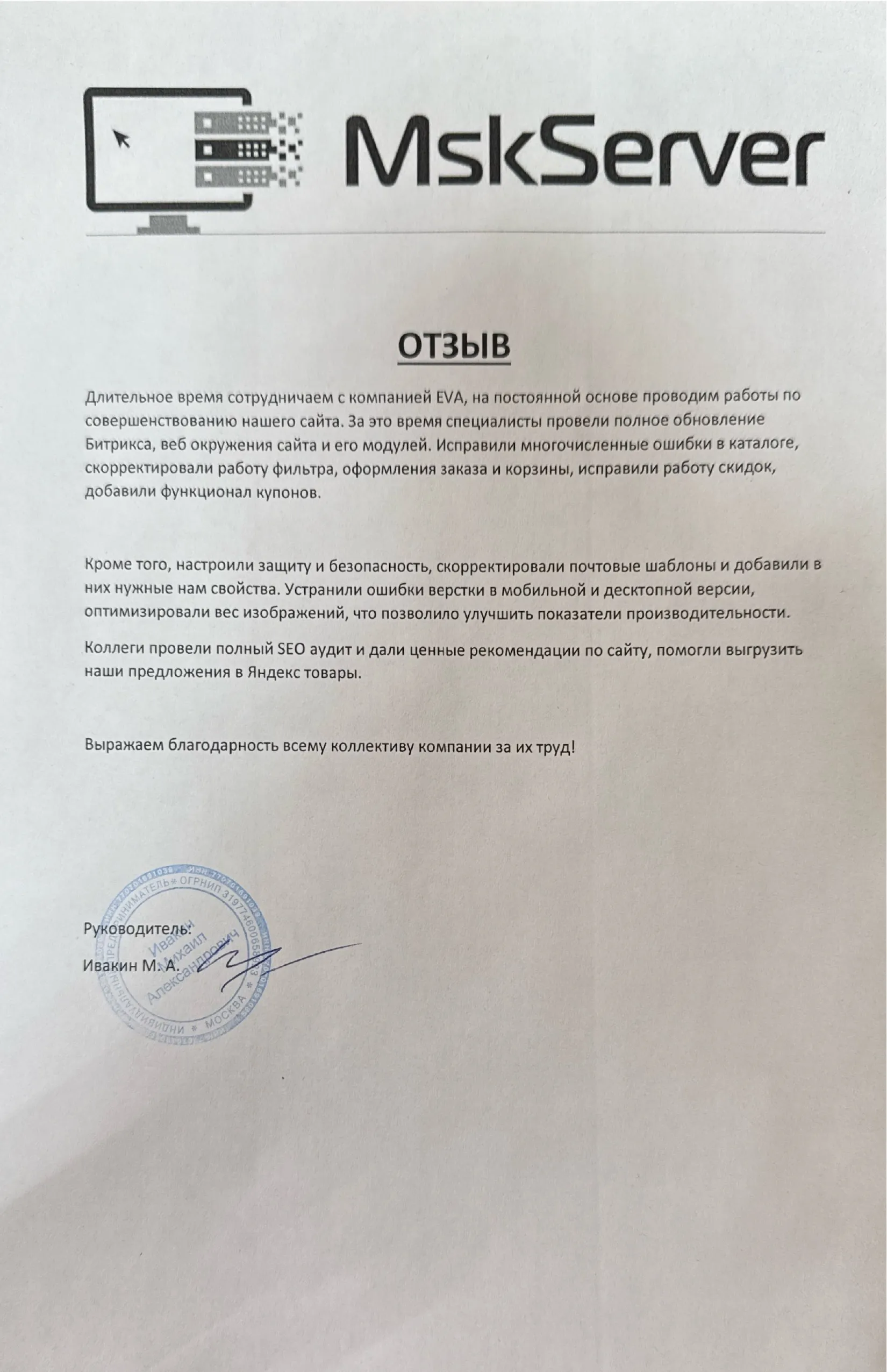 Создание сайта, дизайн, работа над репутацией компании, продвижение сайта