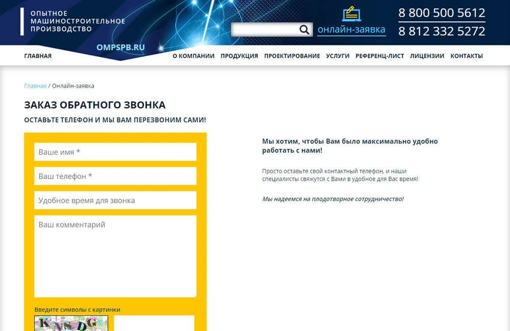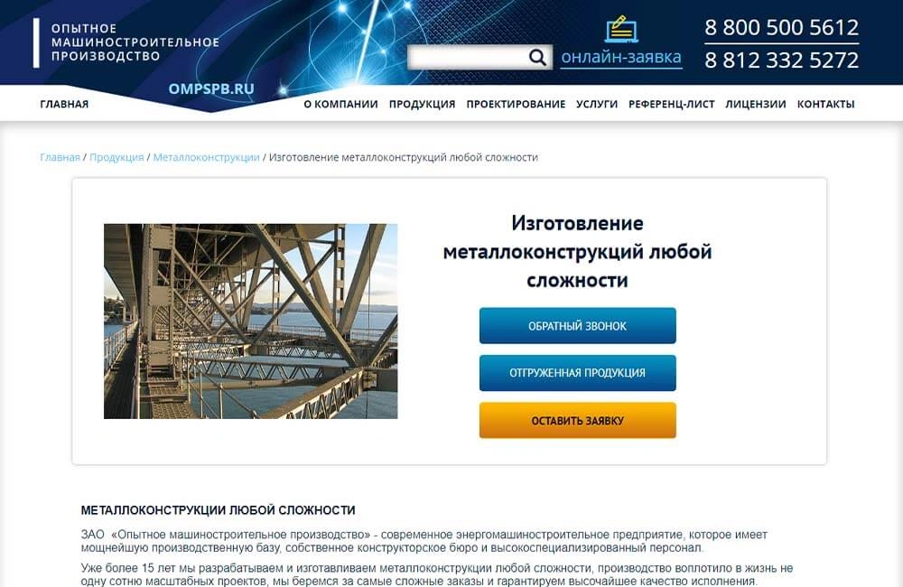 • Сайт машиностроительного производства